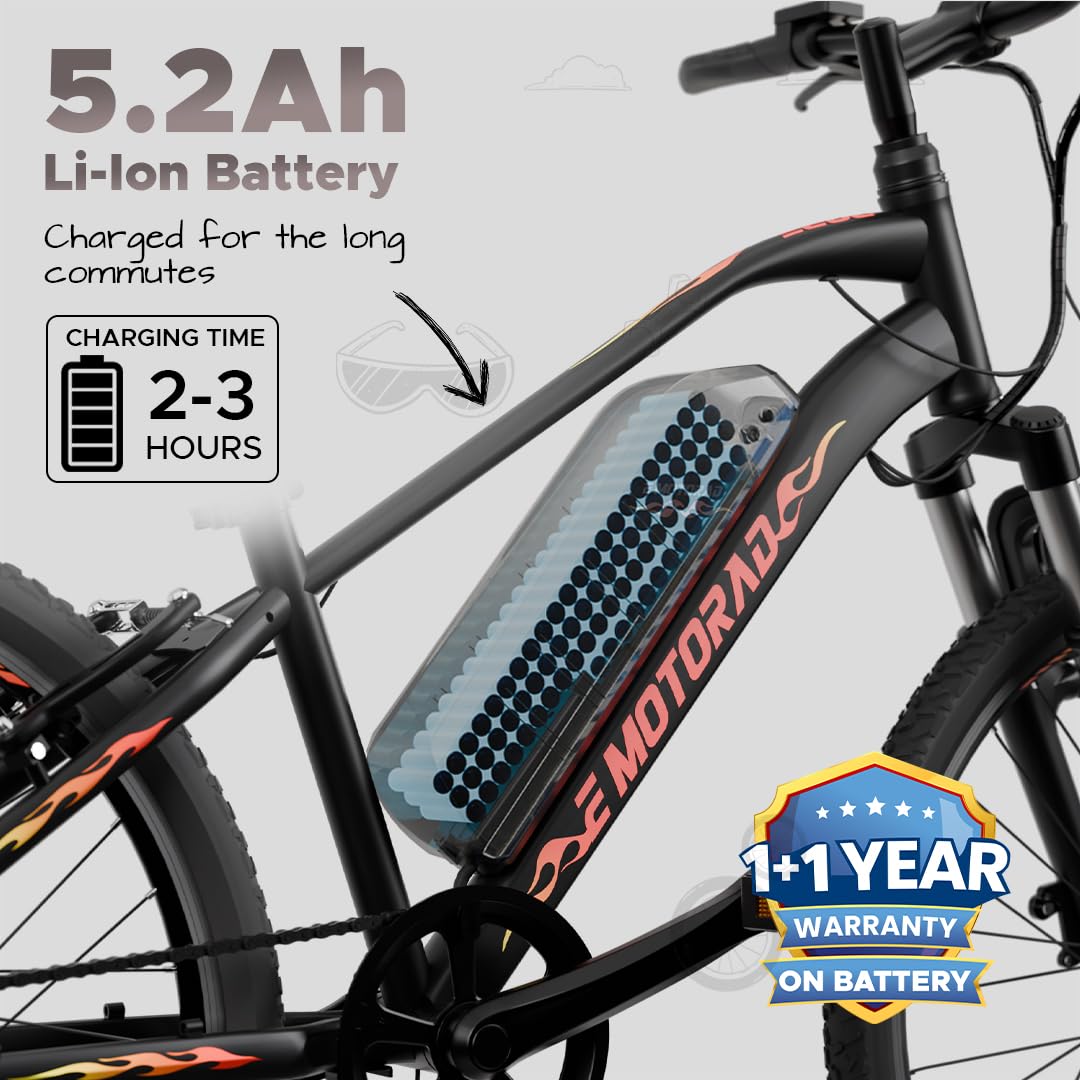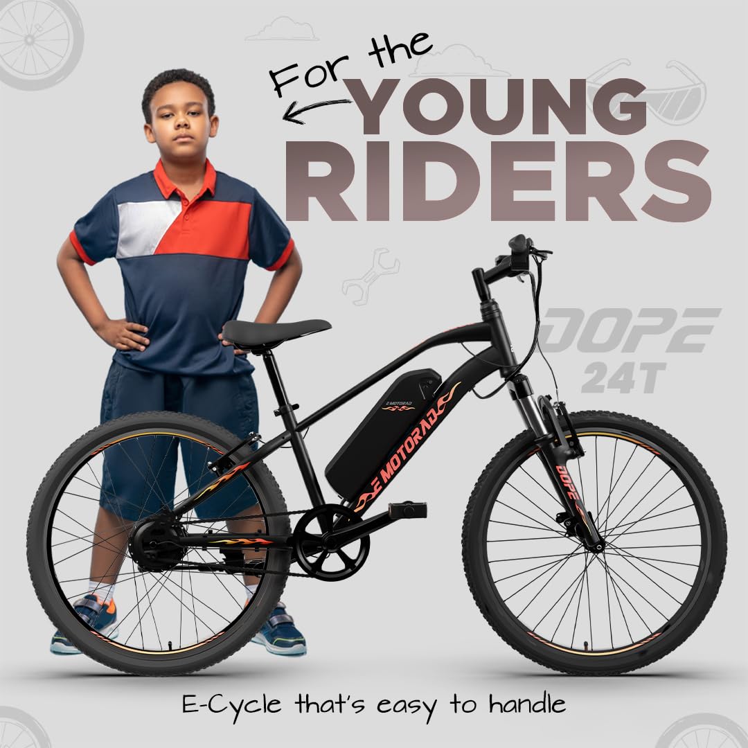 Give your child a confident and exciting riding experience with the EMotorad Dope Kids Electric Cycle. Built for kids aged 6 to 12 years, this e-cycle combines safety focused design with modern features like fat tyres, 7 speed gears, and a foldable frame for easy storage.